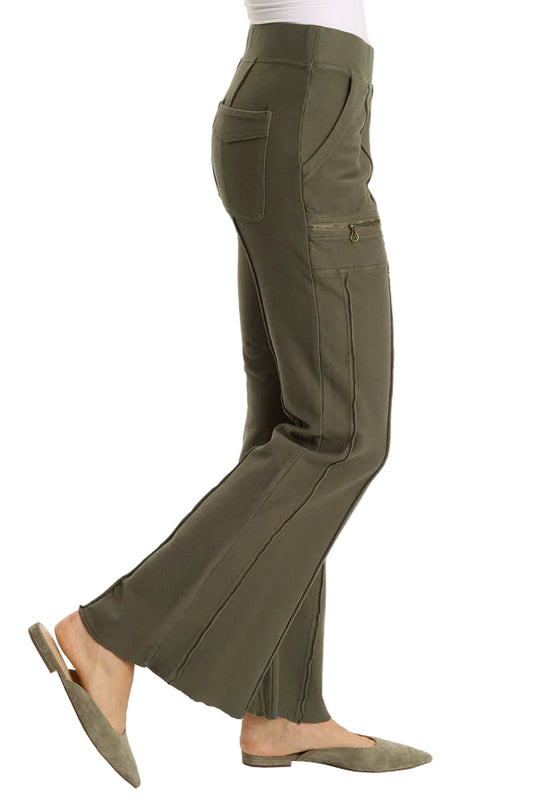 Ninian Twill Knit Zipper Pocket Flared Pant - Olive
