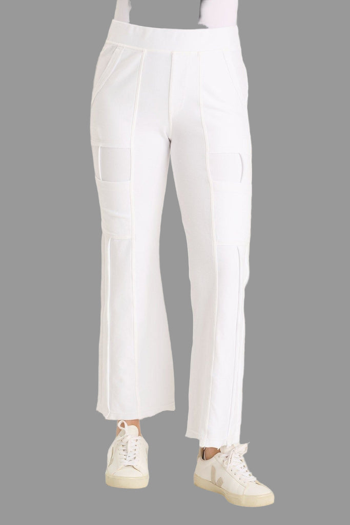 Pockets in the front, pockets in the back, AND pockets on the side! This cargo flare pant features a pull-on waist and fun style lines throughout.