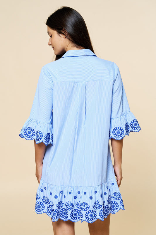 Stripe Light Blue Embroidered Detail Dress