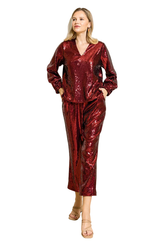 Glam Navy Mock Neck Pull Sleeve Blouse