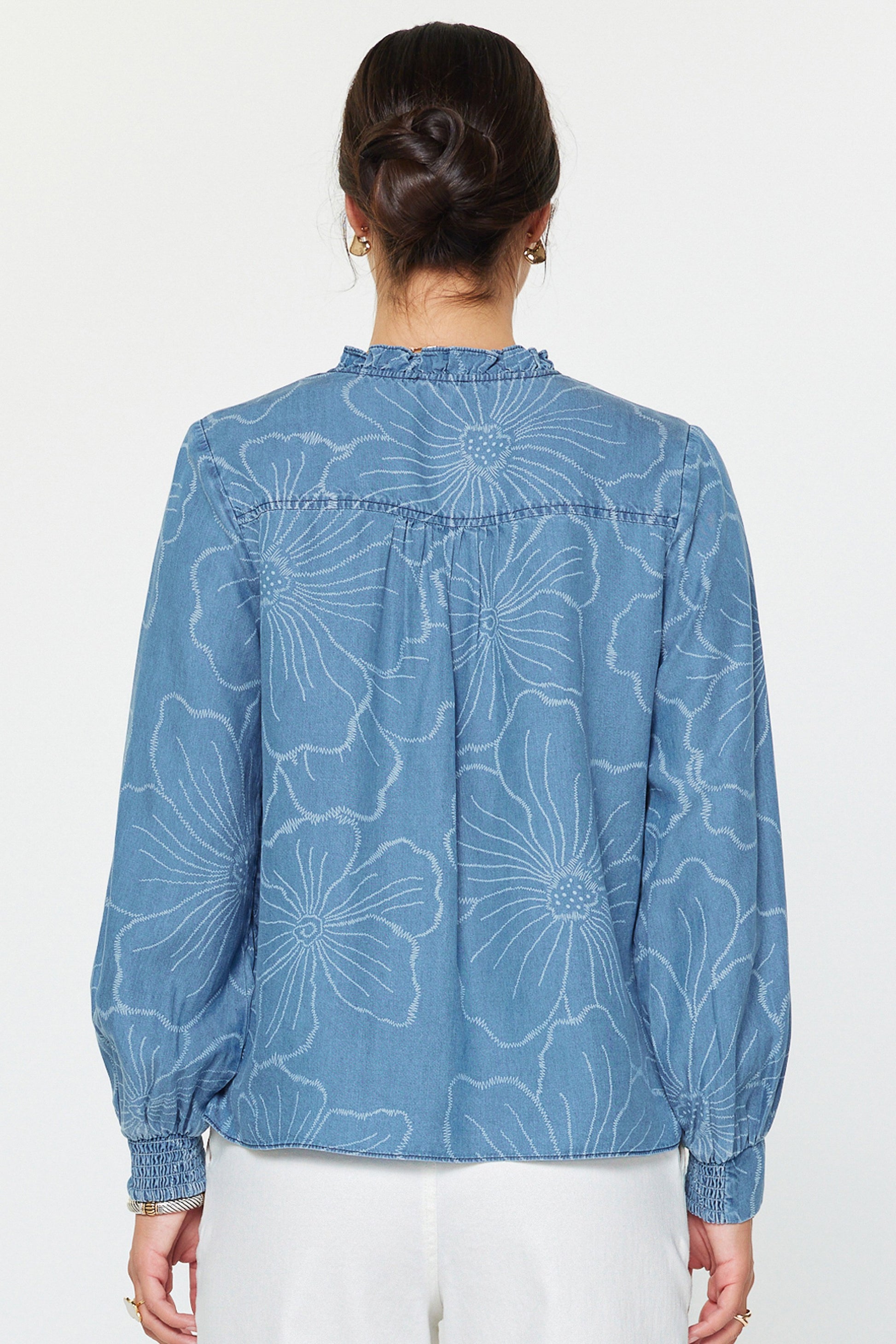 Floral Denim Chambray Long Sleeve Top