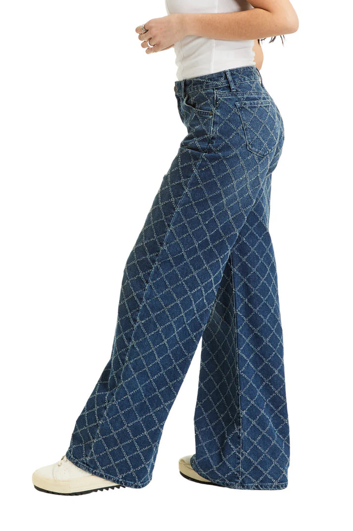 Tractr Diamond Jeans Elevate your denim rotation with these wide-leg jeans featuring distinctive diamond needle punch detailing.